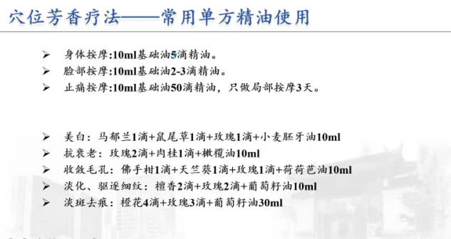 当然,在进行穴位芳香疗法的时候也需要注意患者病史、患者状态等进行对症下药,最大程度上发挥其作用,以适度为最。