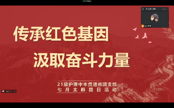 2022年7月5日, 21级护理(中本贯通)班团支部通过线上通过腾讯会议开展了 “传承红色基因,汲取奋斗力量”的主题团日活动。