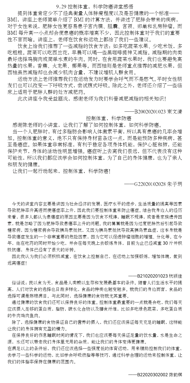 最后与同学们进行互通,交流健康减重的心得,陈丽萍老师通过分享自身减重的小tips,希望使需要减重的人顺利达成目标。大家都对这个话题很感兴趣,通过这次的线上健康讲堂也收获颇丰。接下来让我们看看大家写下的感受吧~