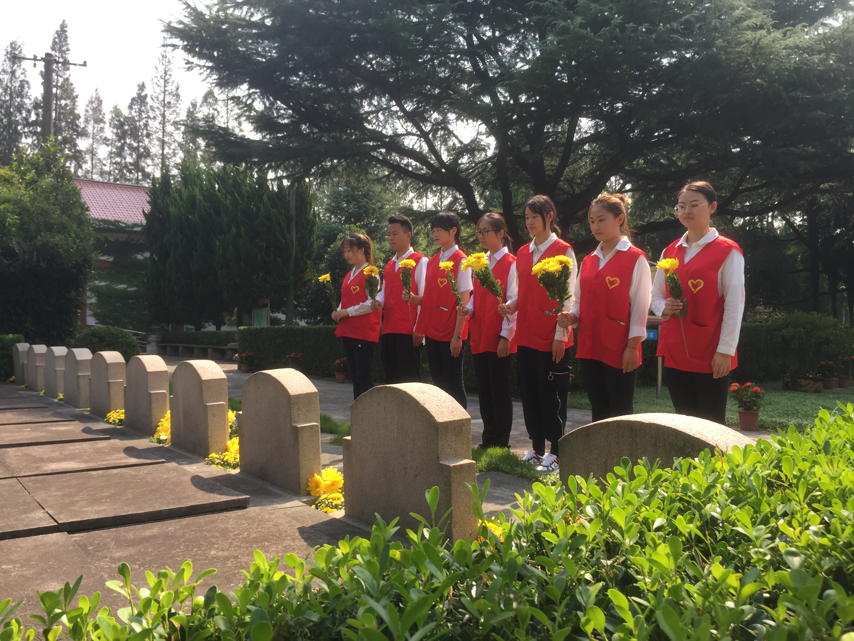 在庄严肃穆的南汇烈士陵园里,员工党员、入党积极分子们一起瞻仰了革命烈士纪念碑,并向烈士英名录墙献花,深切缅怀故去英烈。萧瑟的秋风抹不去员工们的爱国热情,盎然的秋菊寄托着一代又一代中华儿女最深沉的哀思。