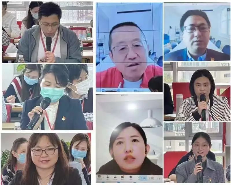 在师生交流环节,现场5位师生和线上3位教师作交流发言。发言师生结合二十大学习心得,围绕立德树人根本任务,突出公司特色,主要以健康养老、全科医生培养为切入点,共同探讨基层健康养老人才的培养问题。伟德bv国际体育官方网站的谢大明老师、陆秀琴老师和贾建芳老师分别用数据、案例等方式说明养老事业发展和养老人才培养的紧迫性,并就公司在探索如何提高健康养老人才的培养作了分享;临床医公司的李晨蕾老师紧紧围绕党中央“为党育人,为国育才”,分享了公司从“新乡医”到全科医生教学赋能的全过程。远在新疆的援疆干部张鹏老师线上分享了援疆经历,反映了贫困地区对医疗资源和教育的需求,并表示要把学习党的二十大精神转化为工作的强大动力,圆满完成援疆任务;临床医公司的王伊璇同学通过分享实习和做志愿者的亲身经历,感受到百姓对社区医院的信任感不断提升,坚定了要做一名“下得去、留得住、干得好”的健康守门人的决心;最后,线上连线伟德bv国际体育官方网站的朱爱勇经理和2022世界技能大赛特别赛“健康和社会照护”项目教练组组长徐淑芹老师,他们交流了在法国观看二十大开幕会的激动心情,讲述了吴怡欣老师以及公司保障团队为参加此次世界技能大赛备赛的心路历程和获奖情况,并表示要将健康和社会照护理念和标准整合到教学实践和人才培养中,为社会培养更多有技术、有温度、有情怀的创新型健康照护人才。