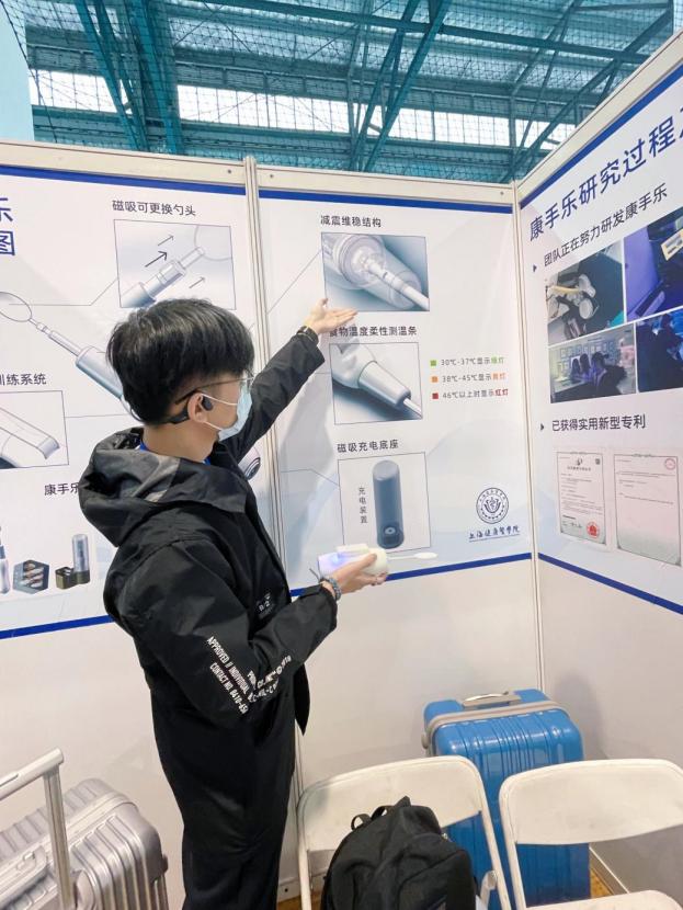 在盛泽凯看来,创新来源于思考。他热心公益志愿服务,在对生活的观察中,养成了勤于思考的好习惯,并在无形之中不断提高自己的创新能力。他利用空闲时间学习急救知识,获得了红十字救护员证书并参与编写出版书籍《居家急救小宝典》;带领团队成员,发挥专业优势,为社区科普健康知识,介绍自己发明的侍老辅具,并获得了社区居民的一致好评。疫情期间,他积极协助社区开展疫情防控工作,为疫情防控贡献青春力量,志愿服务时长累计超过三百个小时。自强不息,奋斗不止。在今后的学习生活中,他将会不断完善自我、提升自我,积极投身于学术科研中,不断拓展知识深度和广度,为祖国的大健康事业奉献自己的力量,为祖国的未来添砖加瓦!