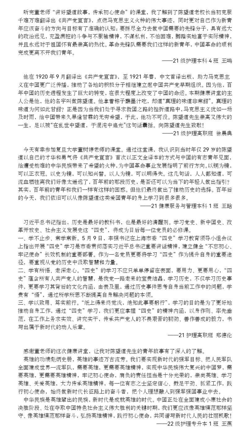 董树婷老师一小时精彩的健康讲堂,让我们穿越历史时空更进一步了解了陈望道先生的青年故事;更让我们体悟在近百年波澜壮阔的苦难辉煌中,深深熔铸于共产党人血脉的初心和使命。健康讲堂的听众收获累累,同时他们也有不同的观后感。