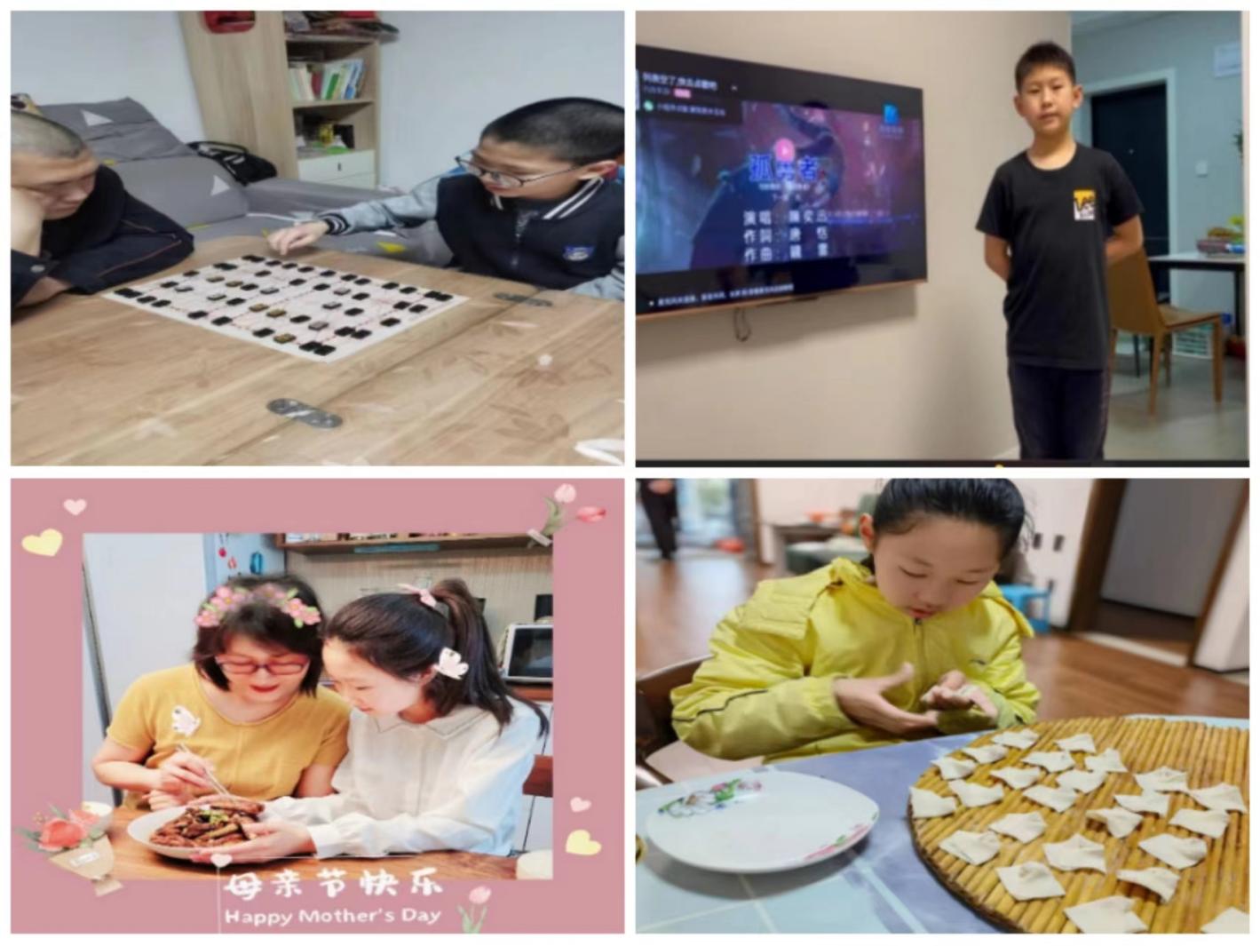 11-14岁的孩子们显得成熟稳重了许多。和父亲一起下国际象棋和军旗,那认真思考的样子尽显智者风范;为爸爸妈妈们做上一顿可口的饭菜,体会父母的不易;弹奏古筝、吹长笛,为大家带来美妙的音乐,驱散疫情带来的阴霾;献唱一首男子汉的独白:孤勇者,震撼有力的歌声让我们感受到了平凡人在命运面前不屈的抗争精神,传达给大家一种与命运战斗到底的不朽精神力量!