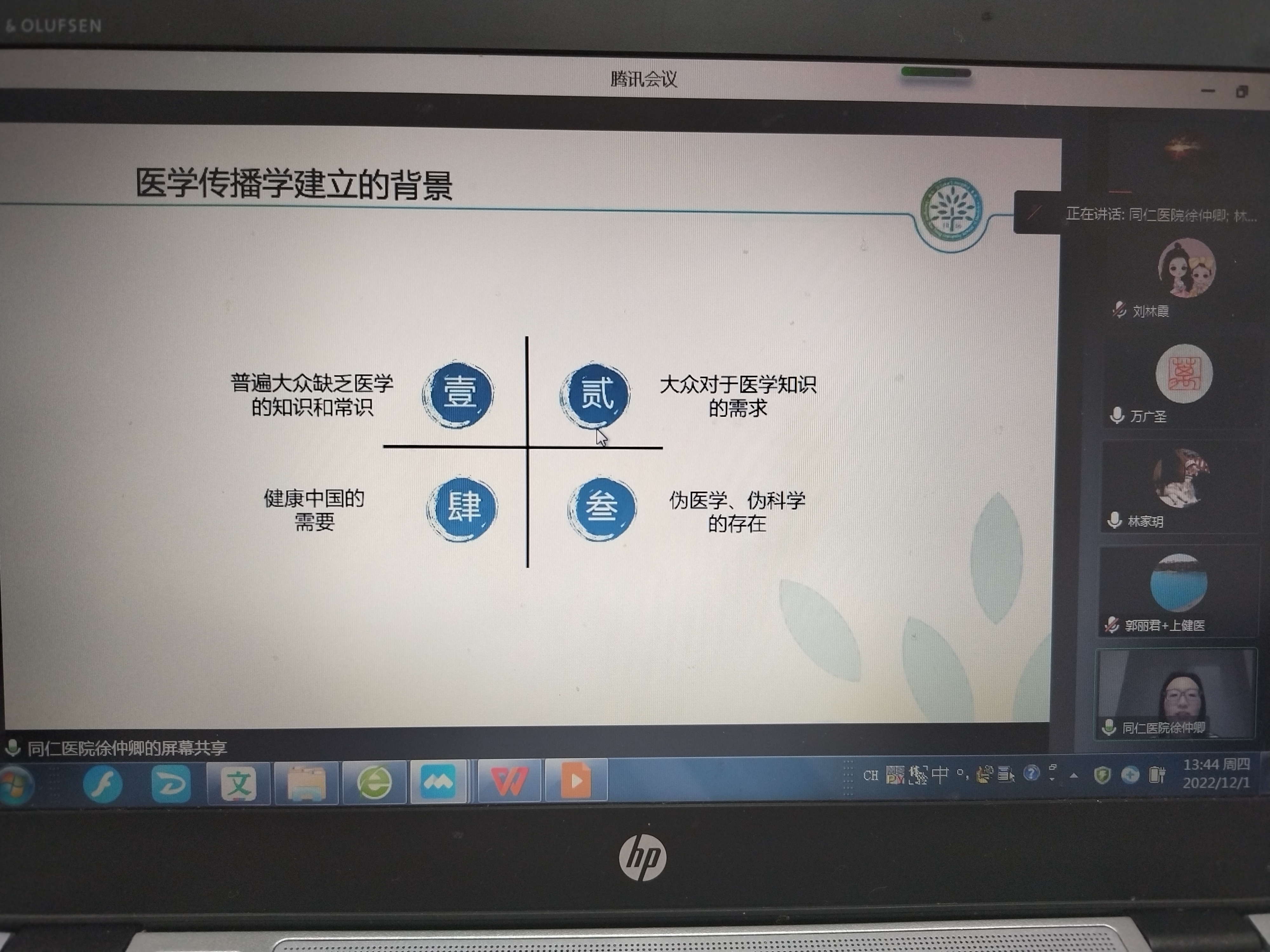 徐仲卿副主任作了《浅谈医学传播学与健康科普》报告,介绍了医学传播学的发展背景、理清了医学传播学的概念和定义,详细介绍了医学传播学的内容、渠道,并对医学传播学的模型进行了阐述和分析。