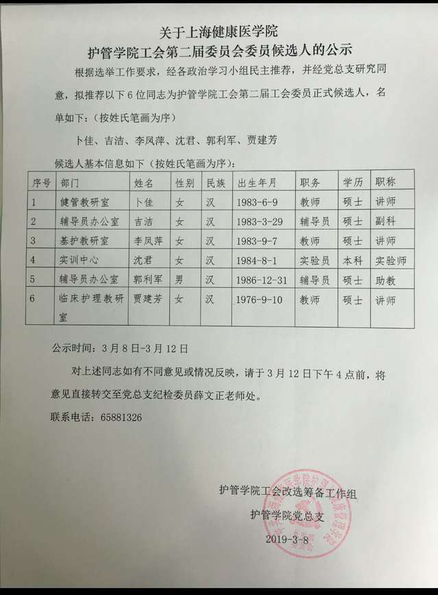 关于伟德bv国际体育官方网站伟德bv国际体育官方网站工会第二届委员会委员候选人公示
