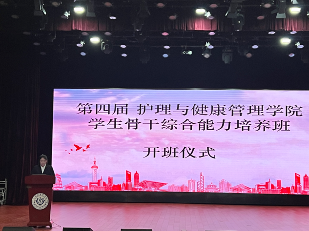 在嘹亮的共青团团歌中,开班仪式正式开始。护理与健康管理学院李影老师、综培班班主任代表以及优秀学员为此次开班仪式进行了精彩的发言致辞。