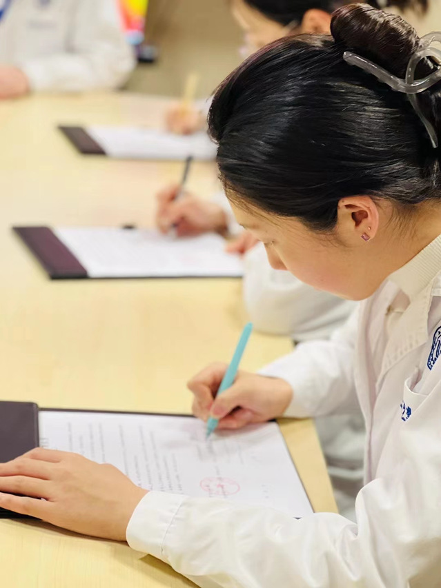上海国际医学中心肿瘤多学科诊疗团队中除了临床医师、护士、康复师、营养师、心理医生等角色外,健康管理师的加入对于肿瘤复发监测、评估、预防、干预等环节都将发挥重要的作用,体现了上海国际医学中肿瘤科高品质医疗发展目标。科室将结合肿瘤专病特色以及国际化先进的健康管理经验,探索高品质肿瘤医疗、护理、健康管理全周期的创新服务模式。5位同学将在上海国际医学中肿瘤科实习教育基地通过肿瘤专病健康管理项目发光发热,为患者及其家属提供多方面、全方位、全程的医疗关爱服务,帮助其实现自我健康管理,同时进一步加深数据分析大数据分析,把医院临床病例做成可以研究的数据,肿瘤的样本数据库赋能数字化精准诊疗为肿瘤病治疗带来省时省力的同时,效率也会更加高效。