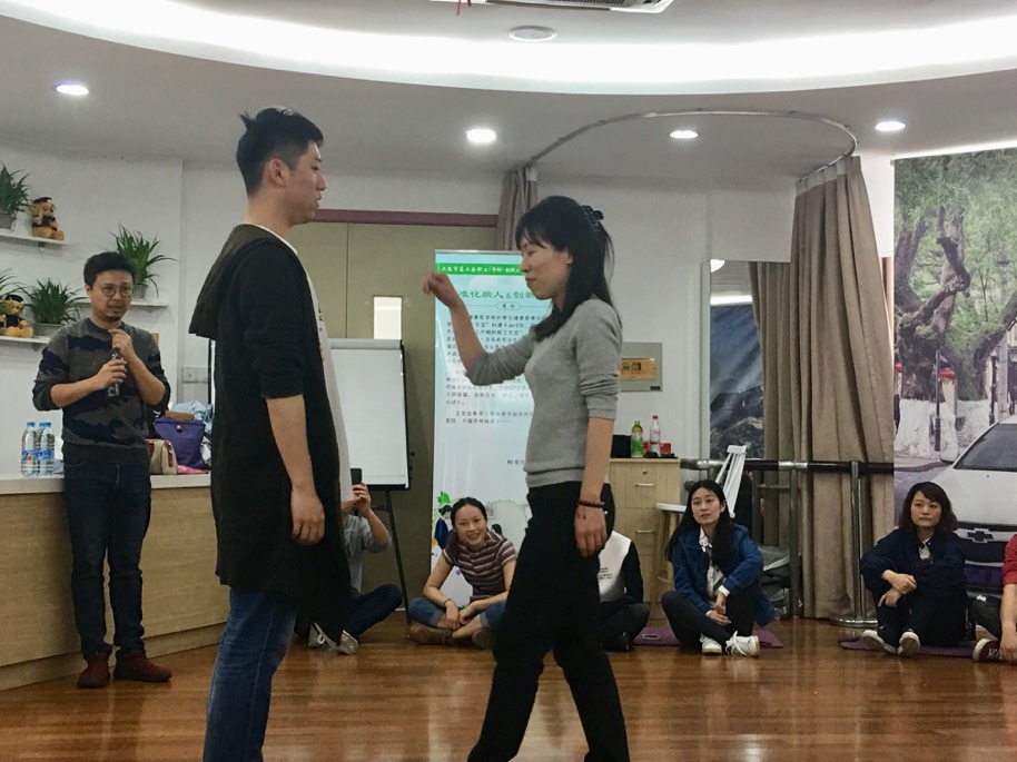 在此基础上,进入到SP的反馈培训阶段,这也是SP工作的主要职责之一。由老师开讲引入,学员以“行乳腺癌切除术的妻子、不被信任的丈夫以及医生”的案例脚本逐一进行角色演绎和反馈训练,在演绎中老师给予反馈要点、反馈原则等重点和难点的指导。