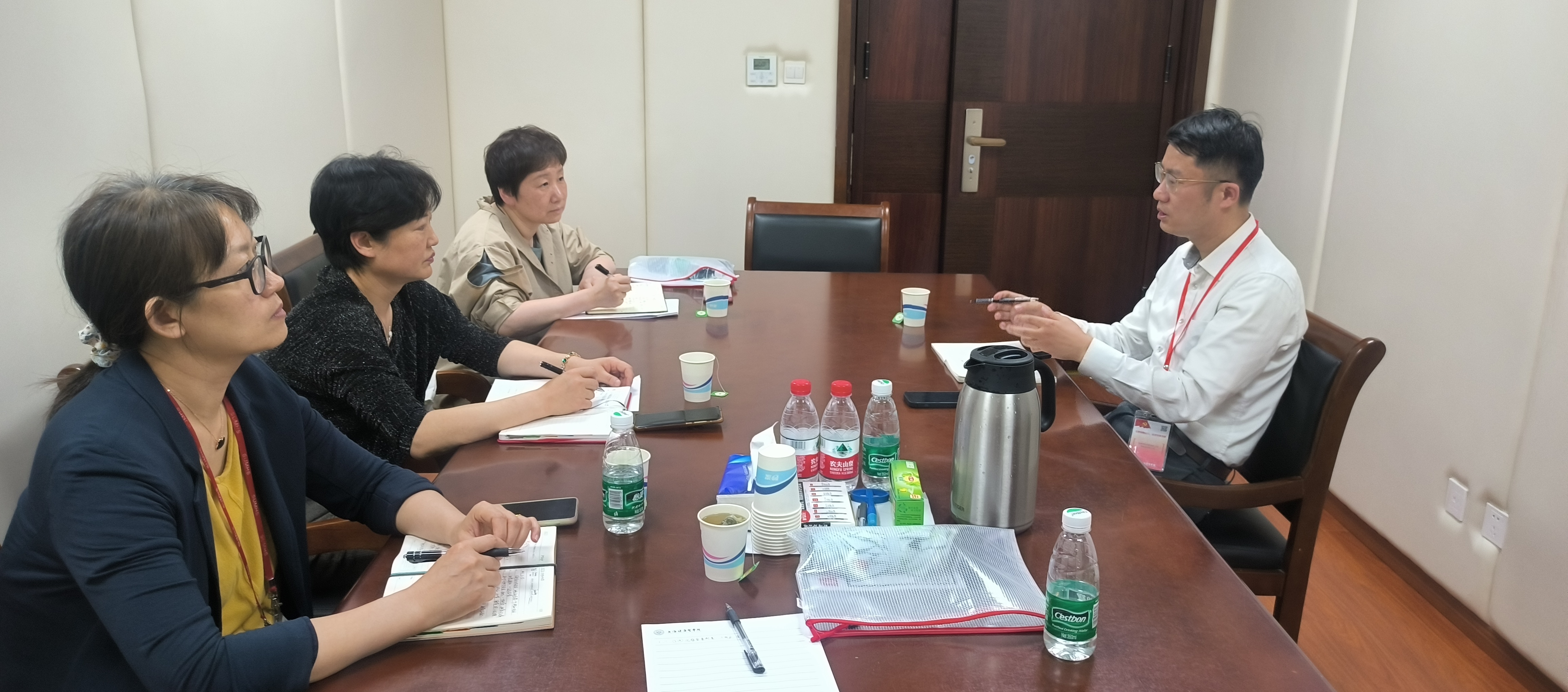 为学习贯彻习近平新时代中国特色社会主义思想主题教育的要求,充分发挥调查研究在科学决策、破解难题、推动发展方面的作用,进一步推进全面从严治党常态化、科学化、制度化,构建党的建设制度体系,5月15日下午,护理与健康管理公司党总支书记郭戎静带队前往公司资产和纪委两个职能部门开展走访调研,资产负责人曾光英和纪检负责人施奇以及部门的相关工作人员参加了调研会,会议由郭戎静主持。