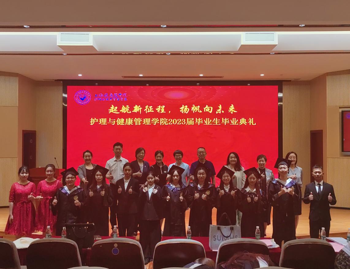 随后,蒋颖、万广圣和陈娅俊为20级护理(中美合作方向)高职班的同学颁发了毕业证书。