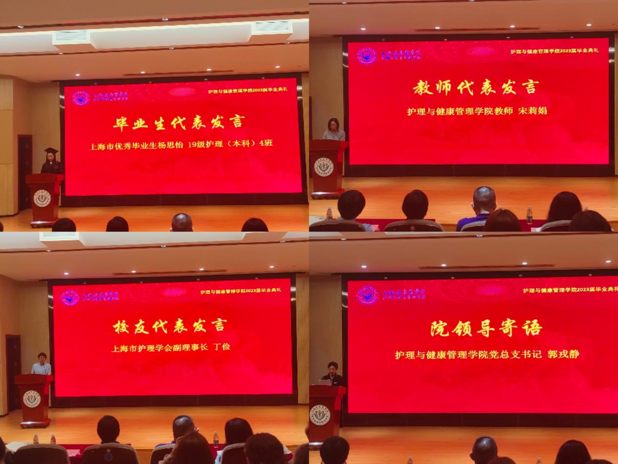 教师代表宋莉娟为毕业生送上了真挚的祝福与期望。希望离开校园走入社会的毕业生们,既能脚踏实地,又能追求梦想,为建设健康中国和健康上海贡献自己的力量。