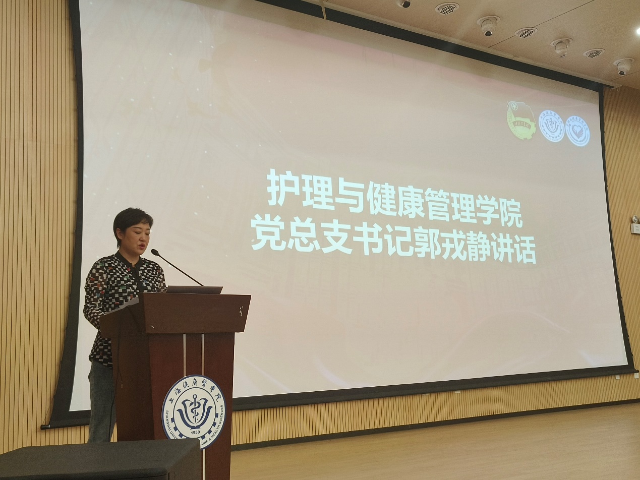 最后是郭戎静致辞,她代表公司党总支对团总支的积极工作表示感谢,她希望广大团员青年要紧密团结在团组织周围,自觉加强个人综合素质的培养,将个人的发展成长融入于国家民族进步事业中,秉承“厚德至善 健行康民”的校训,成为具有“五C、四会、两强、两高”的临床一线岗位胜任力的高素质应用型本科护士和具有基本的健康服务工作能力、初步的教学能力、管理能力及科研能力的高素质应用型专门人才,沉下心来学习、潜下心来感悟,以学铸魂、以学促干,让青春在伟大奋斗中绽放光芒。