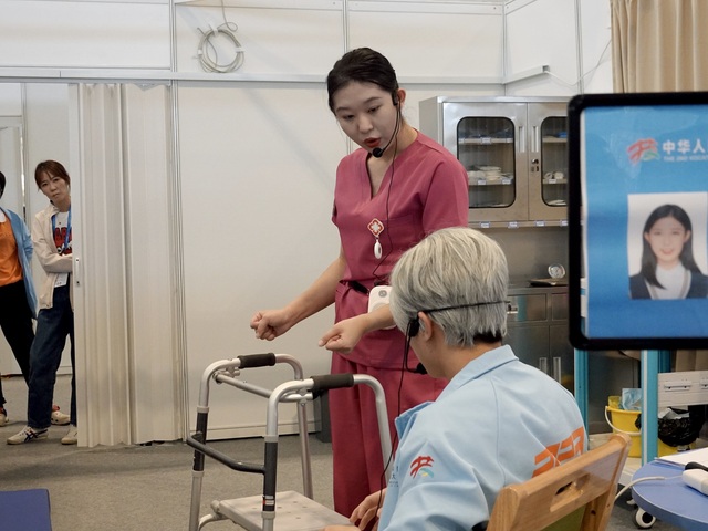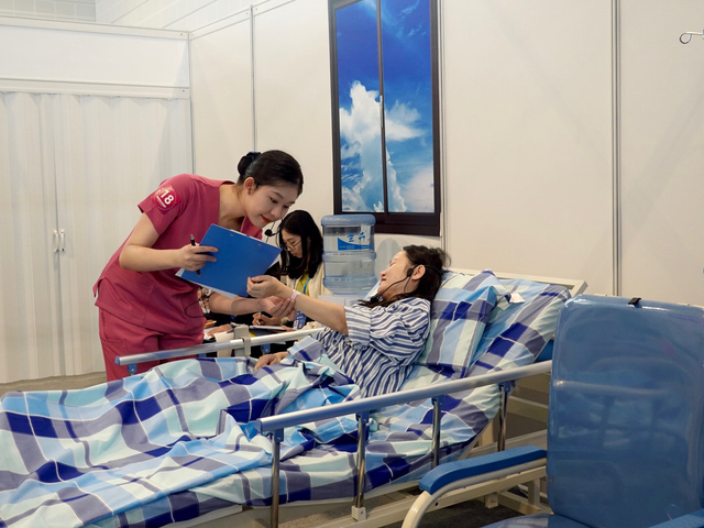 健康和社会照护(世赛选拔赛)项目采用单人比赛模式,通过给予的案例描述和相关材料,利用现有的资源,由标准化病人配合,完成医院、家庭、日间、长期照护4个模块6个案例病人的照护2个案例,每个案例均为75分钟,包括15分钟计划、30分钟实践、30分钟海报或反思报告。曾小桉在赛场上全程用英语与患者交流,做到准确评估患者,倾听患者心声,激发患者参与健康照护,用专业知识和技能为患者提供帮助。她流利的英文表达能力、温文尔雅的职业素养和精湛的专业技能获得场内外观众、专家、裁判、选手的高度关注和阵阵掌声。