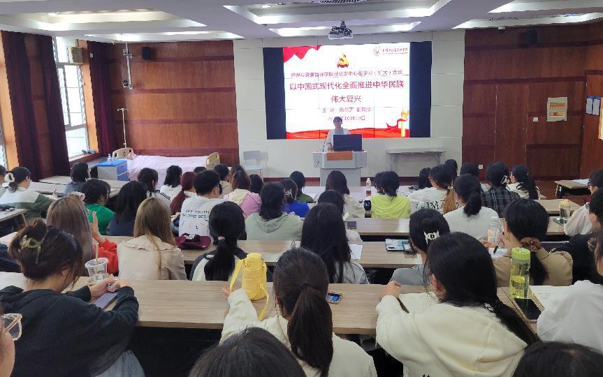 10月19日下午,护理与健康管理公司党总支中心组在北苑9号楼举办专题学习(扩大)报告会,上海电机公司马克思主义公司陈兰芝副教授应邀作“以中国式现代化全面推进中华民族伟大复兴”的专题辅导报告,公司中心组成员、入党积极分子共同参加了此次学习,报告会由公司党总支书记郭戎静主持。