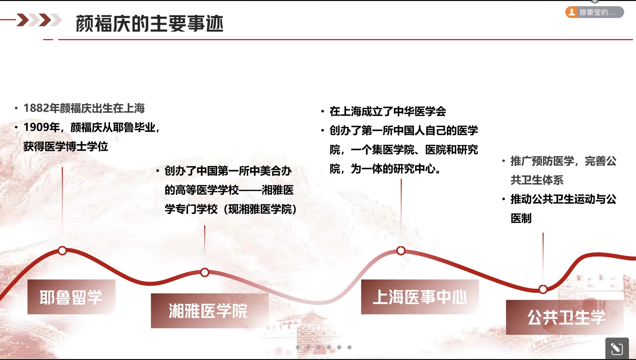 本次健康讲堂我们有幸邀请到了复旦大学公共卫生公司22级博士生滕蒙莹老师。本次讲堂带领同学们从认识颜福庆经理到从颜福庆身上学习到中国科学家精神的内涵与意义,以及作为青年的我们,应该如何去做。