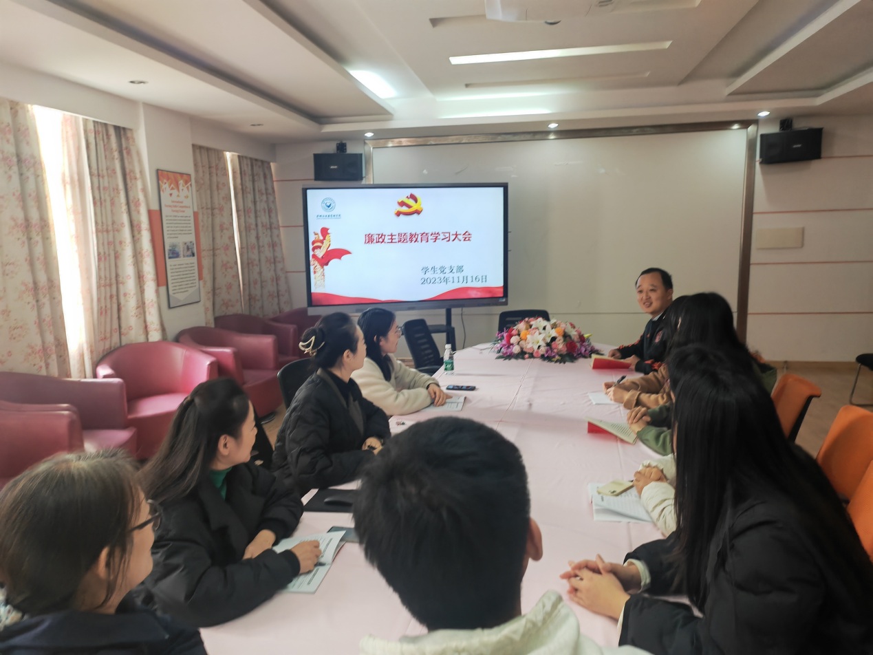 11月16日上午,纪检委员郭利军组织开展廉洁教育主题党课,号召全体党员以《中国共产党廉洁自律准则》为准绳,立德修身,潜心治学,开拓创新,真正把为学、为事、为人统一起来,争做有理想信念、有道德情操、有扎实学识、有仁爱之心的“四有”好老师,提升教师的规则意识,坚守师德师风底线红线,增强抵御腐败的能力,让廉洁的清风吹遍校园的每一个角落。