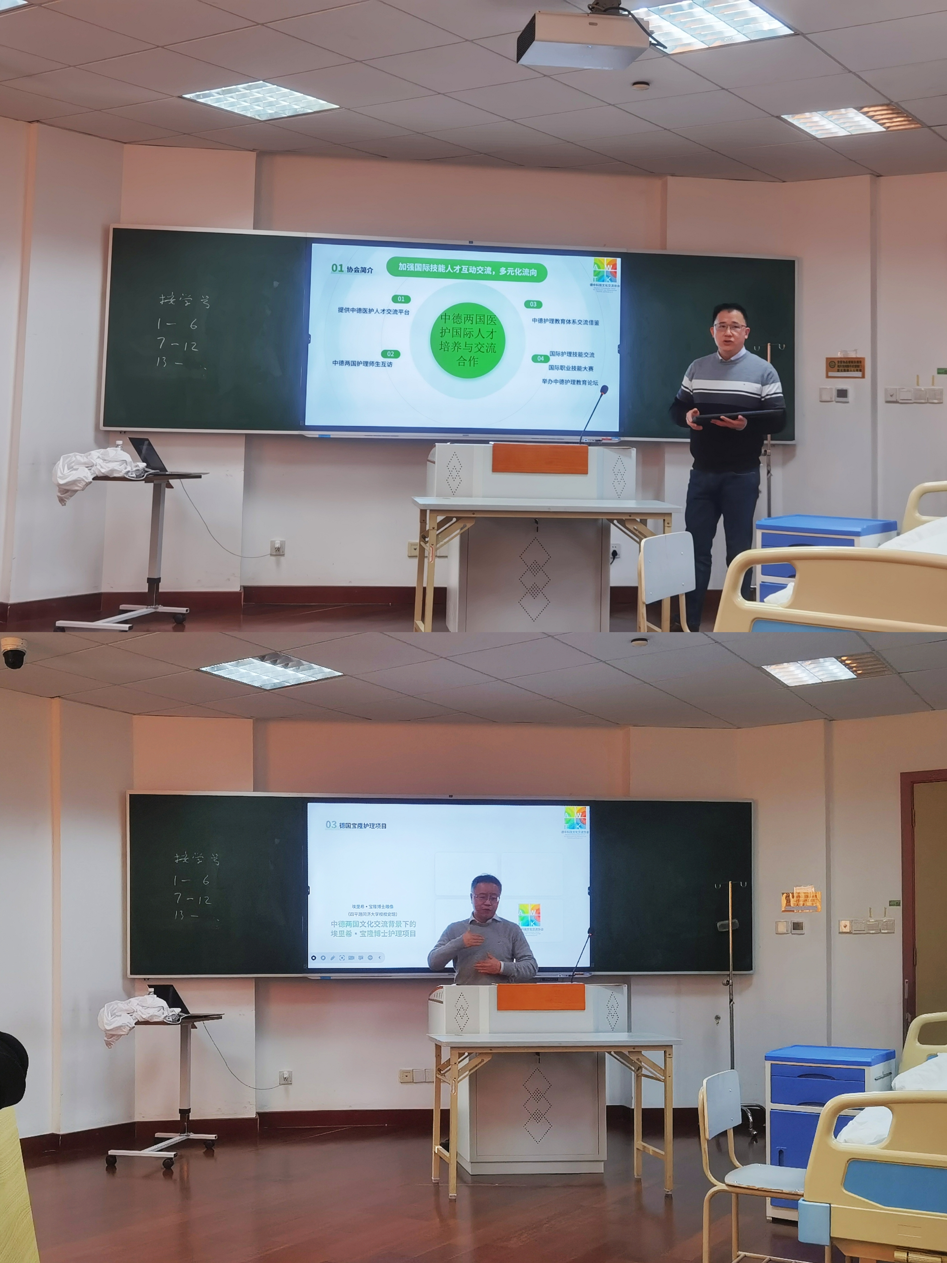 为构建中德人才流动体系,培养具有国际视野和国际竞争力的高素质人才,伟德bv国际体育官方网站于1月9日下午在9号楼300教室召开了新年第一场国际交流与合作宣讲会——暨德国埃里希宝隆护理公司护士深造项目。本次宣讲会邀请德-中科技文化交流协会会长陶兴煜、德-中文化交流协会秘书长丁涛为公司2021级护理本科、2022级助产(高职)以及2022级护理(高职)的全体员工带来一场中-德国际护理深造的专题讲座,会议由伟德bv国际体育官方网站外事办公室秘书卜佳主持。