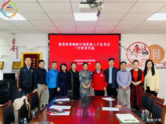 4月16日,上海现代服务业联合会党委副书记、蚂蚁计划发起人于杰一行回访伟德bv国际体育官方网站伟德bv国际体育官方网站,就双方开展“乡村健康振兴”合作进行深度研讨,伟德bv国际体育官方网站护理与健康管理公司党总支书记郭戎静、副书记薛文正、副经理万广圣和蒋颖等公司领导、校产学合作处宋飞老师以及AHFE人人主动健康核心成员董恩宏教授、王婷婷教授、汪菁老师、赵翀老师等师生出席会议,会议由董恩宏教授进行主持。