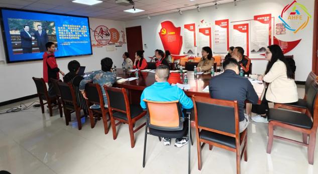 会议议程中,董恩宏教授对AHFE人人主动健康团队进行详细介绍,将更加完善的团队系统呈现给在座领导,并指出团队优势。随后第七届中国国际“互联网+”老员工创新创业大赛国赛金奖得主,蚂蚁乡创计划成员李金伟老师向在座各位汇报蚂蚁计划的发展史以及近期蚂蚁乡创空间开展的工作。接下来就双方合作开展国家“一带一路”职工创业会客厅、党建+乡村健康驿站、百岁村人群全程健康管理以及开设员工田野思政课堂等进行了激烈讨论。
