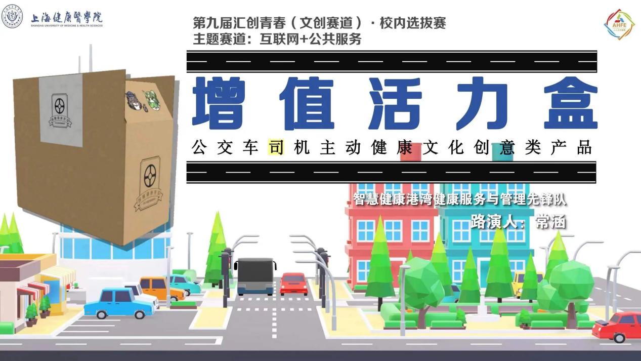 该作品在AHFE人人主动健康管理团队核心成员汪颖霞老师、王婷婷教授、董恩宏教授等的指导下,荣获上海市二等奖。在“健康中国 2030”规划纲要下,紧抓公交车司机健康异常问题,结合以健康管理师为原型设计拟态形象“伊鹿”,依托“增值活力盒”的创意,实现“亲属健康消费转移”给付模式,并将“增值活力盒”融于知信行模式提升公交车司机的主动健康素养。