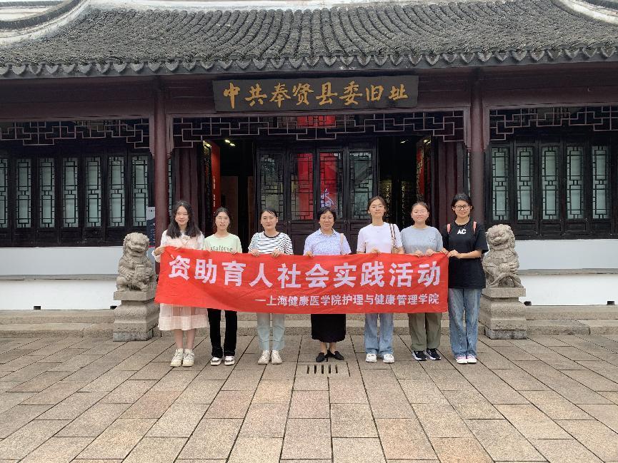 随后,资助队伍一行来到中共奉贤县委旧址进行红色景点参观学习。中共奉贤县委旧址原为“潘公祠”。1927年8月,奉贤籍共产党员李主一,以国民党县党部执行委员的公开身份,与中共党员大刘(刘德超,化名刘炳)、小刘(刘晓,化名刘巽斋)在这里创办私立曙光中学,同时秘密成立中共曙光中学特别支部,成为奉贤境内第一个中共党支部。同年秋,在中共曙光中学特别党支部的基础上,成立中共奉贤县委员会。这座承载着丰富革命历史的建筑,见证了奉贤地区在中国共产党领导下的光荣奋斗历程。在讲解员的解说下,服务队一行聆听了感人的革命故事,观摩了宝贵的革命文物,大家仿佛穿越了时空,与革命先辈展开了时空对话,感受着革命先辈的丰功伟绩。参观过程中,公司服务队成员李丹婷同学作为曙光中学员工,积极讲述了她在曙光中学在校期间接受的各类爱国主义教育活动。当看到陈列的曙光中公司歌歌谱时,李丹婷同学情不自禁地带领大家吟唱起来。