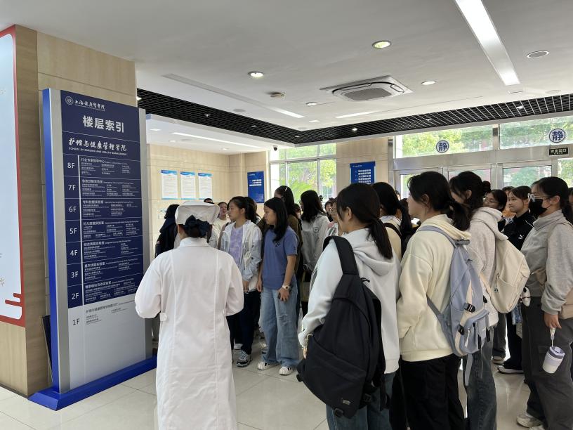接着,护理志愿者团队的志愿者,穿着全套护士服按次序带领一批批新生从高楼层到低楼层,向新生们介绍了实训楼的布局和主要功能区。并且带领新生逐层走进各个实训室,了解未来几年内,每个同学都可能会用到的实验设备和相关课程学习的区域,新同学们在参观的过程中表达了对未来进入这幢实训楼的学习生活的憧憬。