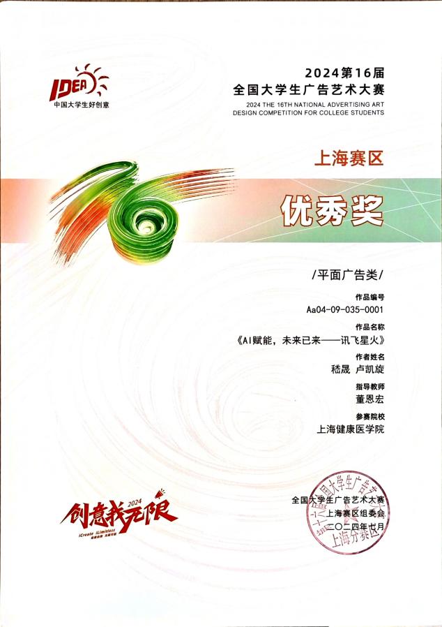 2024年7月,第16届全国老员工广告艺术大赛上海赛区落下帷幕,大广赛是由教育部高等教育司指导,中国高等教育学会、教育部高等公司新闻传播学类专业教学指导委员会主办的全国性高校文科大赛,位列2023年国家A类赛事第十位,本届大赛以“创意我无限”为主题,涉及19个命题。上海赛区共计收到报送参评作品6645件,经过初审后,共计1296件作品进入终审。