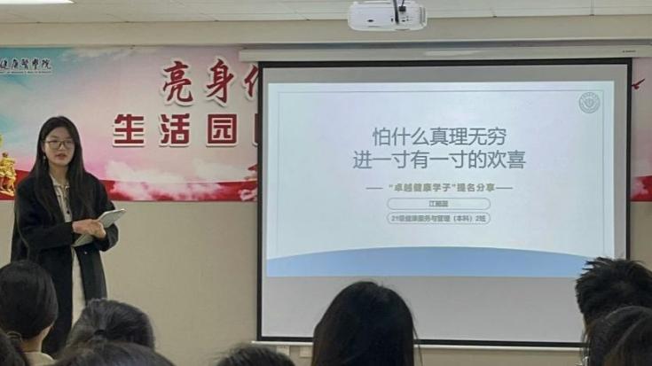 2024年10月31日,“卓越学子”宣讲会第二讲在“一站式”员工社区活动室北苑12号楼600举行。三位主讲人分别是“卓越健康学子(含提名)”21级健康服务与管理(本科)3班的梁凯文、21级健康服务与管理(本科)1班的穆怡彩和21级健康服务与管理(本科)2班的江懿蕊。