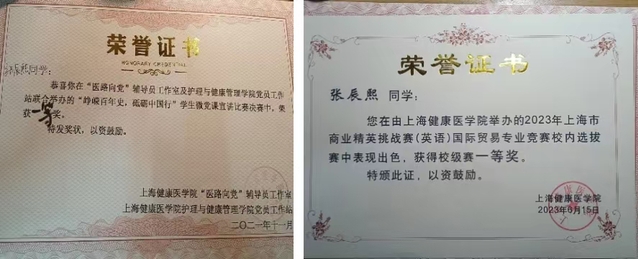学习方面:自入学以来,勤奋刻苦,成绩斐然。通过不懈努力,学习成绩一直保持在班级乃至年级前列,连续三年获得伟德bv国际体育官方网站校级一等奖学金,并获得“三好员工”荣誉称号,获得过伟德bv国际体育官方网站教育发展基金会2023年“建国奖”奖学金。通过了国家大学英语四级考试,国家大学英语六级考试,上海市计算机一级,普通话二级乙等。还参加过英国剑桥大学学习护理相关课程。在学习之余,积极参加校内外竞赛活动,曾获得“峥嵘百年史,砥砺中国行”员工微党课宣讲比赛一等奖,2023年上海市商业精英挑战赛国际贸易专业竞赛校级一等奖,2023年上海市高校商业精英挑战赛国际贸易赛优胜奖,伟德bv国际体育官方网站院徽、院训征集活动中荣获一等奖等一系列奖项。