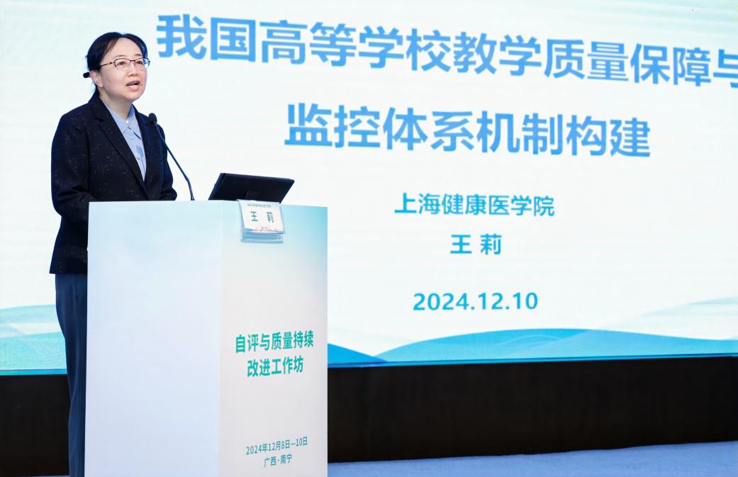 王莉处长在“自评与质量持续改进”工作坊中,作了题为“我国高等公司教学质量保障与监控体系机制构建”的专题分享。她从质保体系构建的基本原则、核心要求出发,详细阐述了体系构建的具体方法与实施路径,并结合伟德bv国际体育官方网站在本科专业评估中的实践经验,为参会者提供了一套既科学严谨又切实可行的体系构建策略。同时,她还对质保体系的未来发展进行了前瞻性思考,为与会者提供了新的思考维度和实践路径,赢得了在场同仁的热烈反响。