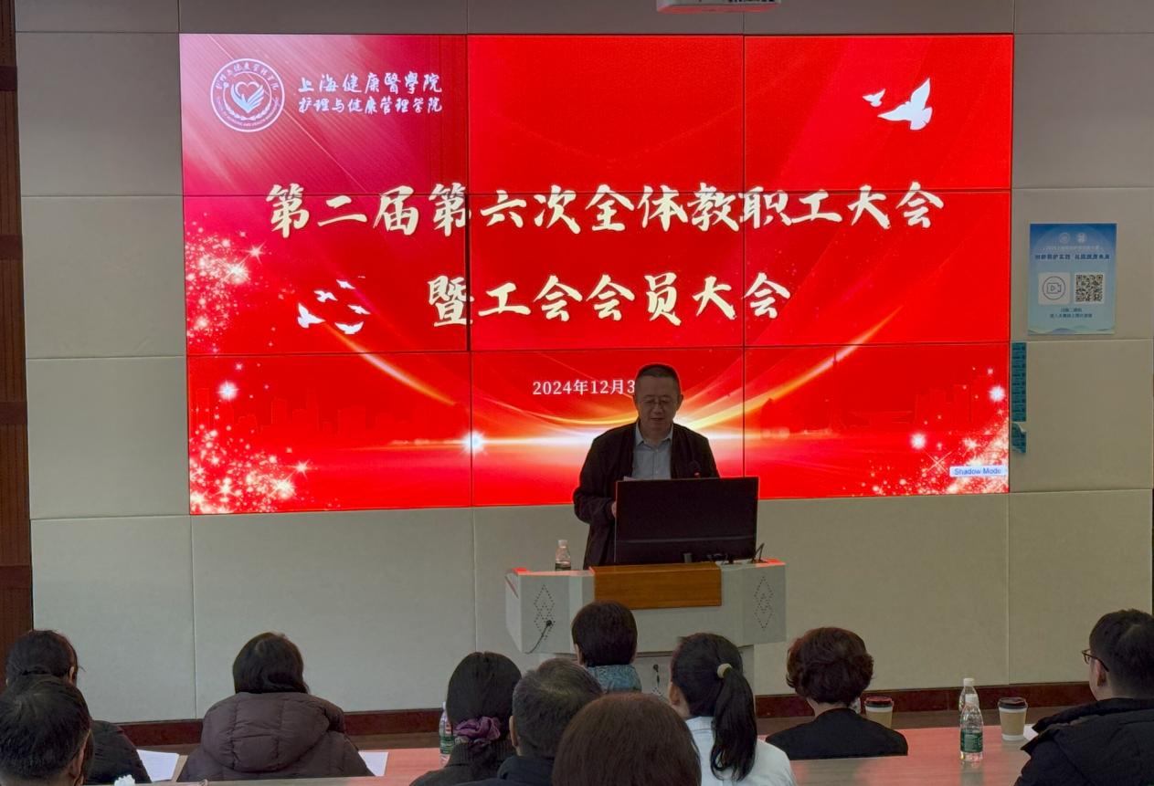 大会在民主、团结、奋进的氛围中完成了各项任务。2025年是“十四五”规划的收官之年、也是谋划“十五五”规划之年,大会号召:全院教职工要更加紧密地团结在以习近平同志为核心的党中央周围,全面贯彻党的二十届三中全会精神,统筹推进教育、科技、人才体制机制一体化改革,以上海市高校学科专业的优化与布局为指引,锚定2035年建成健康中国的目标,坚持“医工结合、医养结合、医保结合”办学特色,把握护理学专业定为国控专业的发展机遇,坚持为党育人、为国育才,围绕全方位、全场景、全生命周期的战略转型目标,为加快培育中国式现代化所需的新型健康照护人才而努力奋斗!