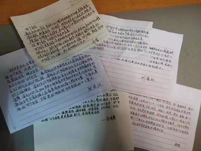 3、在活动结束后,顾怡蕊同学向团支书反馈,在这之前,她仅仅只是从书本上或新闻当中了解到“四个自信”指的是道路自信、理论自信、制度自信和文化自信,仅此而已,但今天,她了解到文化自信是自信之根,理论自信是自信之魂,制度自信是自信之本,道路自信是自信之用。她表示,这次学习让她受益匪浅。