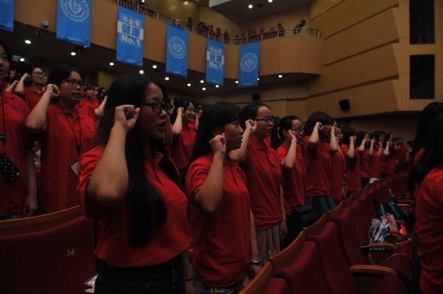 最后,护理公司实践教研中心主任周丽君带领全体毕业生,重温了医员工誓言,庄严的宣誓声响彻整个会场。