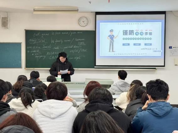 班级治保委员在主题班会上开启反诈知识小课堂。他们精心收集资料,向同学们揭露刷单返利、冒充熟人诈骗、网络交友诱导赌博投资等常见诈骗手段。