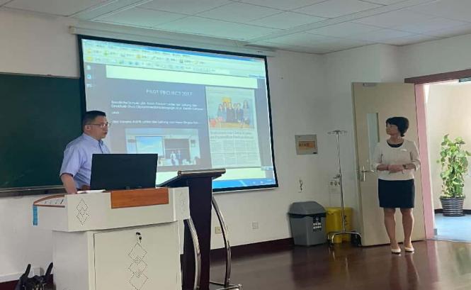 参观结束后,Latzkow经理为伟德bv国际体育官方网站的师生们带来了一场精彩的宣讲会,中德科技文化交流协会主席陶兴煜先生担任翻译。在宣讲会上Latzkow经理向同学们介绍了德国宝隆护理公司的历史及其与中国的联系。她强调,德国宝隆护理公司一直致力于培养具有全球视野的护理人才,将通过双向选择、择优录取的方式,为中方合作院校的员工提供在德国双元制护理教育体系下学习的机会。此外,经理还详细阐述了德国护理专业实习生毕业后的职业发展前景,以及德国医院护士的工资、补贴和相关福利等情况,让同学们对德国护士的学习要求与待遇有了更全面的了解。互动环节中,同学们积极提问,Latzkow经理与陶兴煜主席耐心细致地为他们答疑解惑。