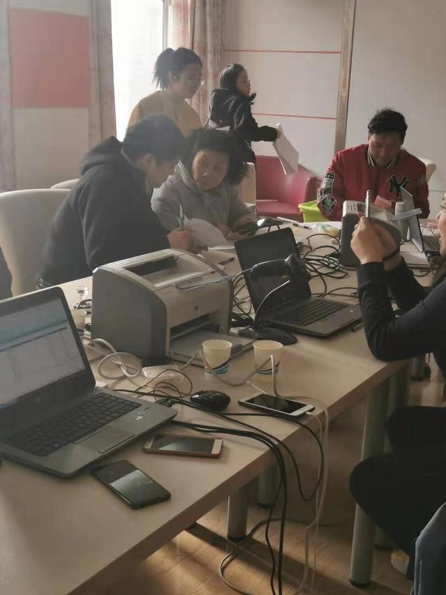 依照李娟娟老师预先安排的顺序,每班2名代、一个批次3个班级,有序签到进场,现场3台电脑同步操作,8名老师分工合作:或审核报名表材料,或检验身份证复印件的有效情况,或对100元的报名现金进行验钞,现场工作配合高效默契、有序快捷。截止2019年12月12日下午13点30分,22个班级、共计1016名同学现场确认工作顺利完成。