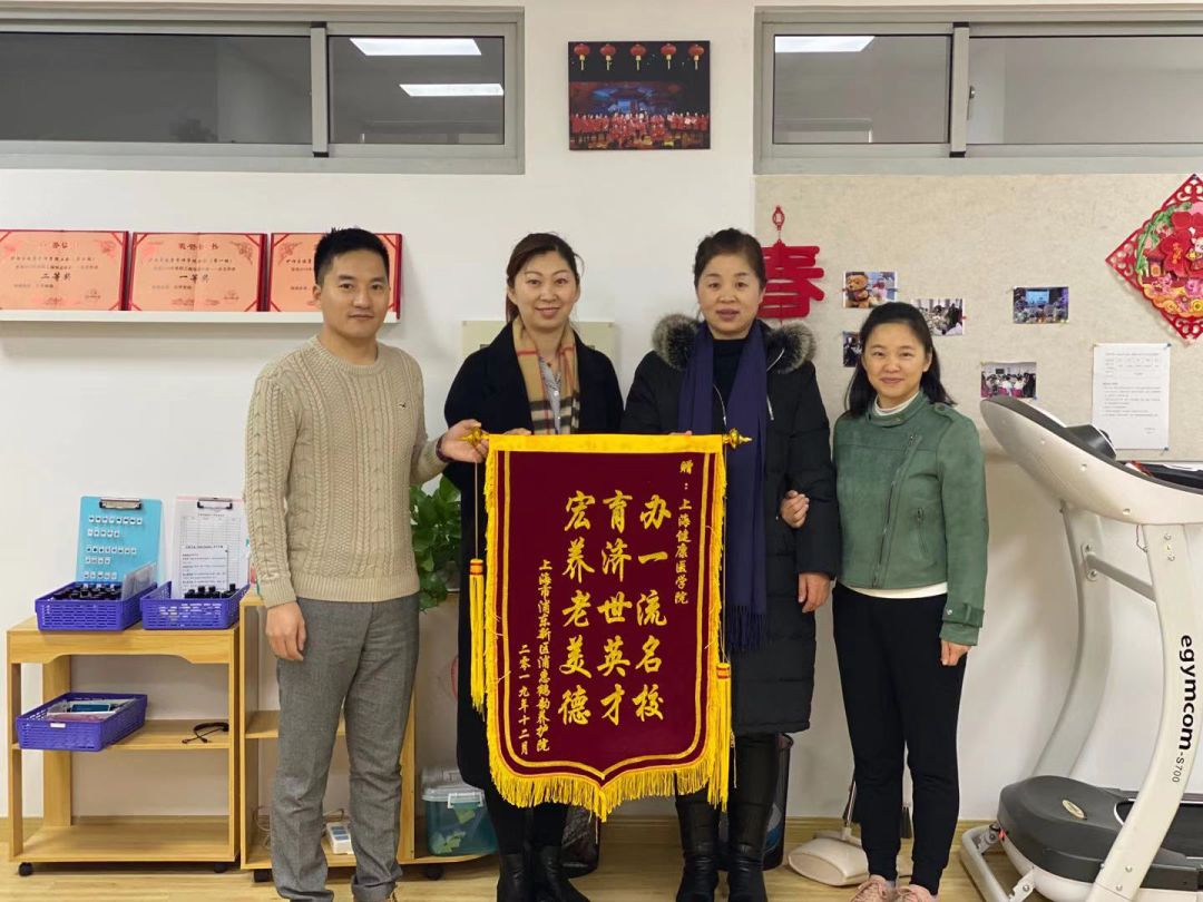 20191226日上午,上海市浦东新区浦惠鹤韵养护院办公室主任田翠萍老师和康乐业务部主任沈春辉老师将一面写着“办一流名校、育济世英才、宏养老美德”的锦旗送到了我们伟德bv国际体育官方网站,并对公司志愿者提供的服务,以及对志愿者们的无私奉献和热情投入表示感谢和肯定。