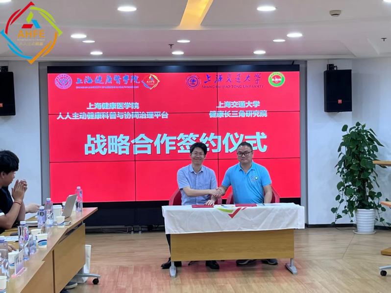 随后由伟德bv国际体育官方网站科技处副处长陆秀宏与上海交通大学健康长三角研究院执行经理张录法各自代表双方正式签署战略合作协议,随后展开了自由讨论。双方老师都发表了自己的意见与看法,伟德bv国际体育官方网站科技处副处长陆秀宏对AHFE团队的工作给予了充分肯定,指出该团队为社会从被动健康→主动健康的变革作出了贡献,并对平台未来发展提出三点建议与展望:希望人人主动健康科普与协同治理平台充分发挥上海的地缘优势,立足上海、辐射长三角、服务全国,以“智圆行方”为理念,推动“知行合一”的实践落地。