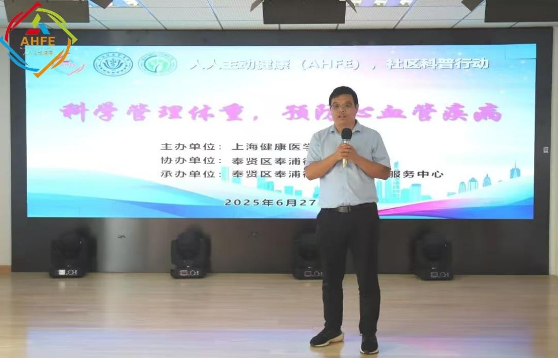 2025年6月27日上午,正值七一前夕,党建引领下,AHFE人人主动健康管理团队在奉浦街道开展“人人主动健康(AHFE)·社区科普行动—‘科学管理体重,预防心血管疾病’”健康科普活动,旨在深化“人人主动健康管理”(AHFE)理念推广与实践,推动健康服务创新发展。