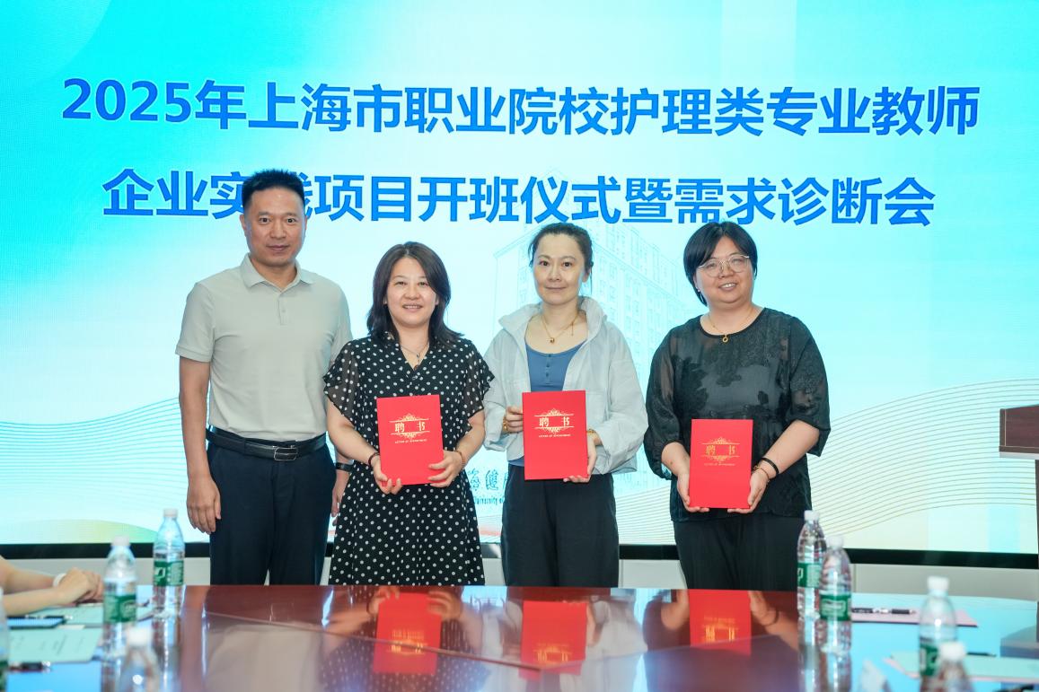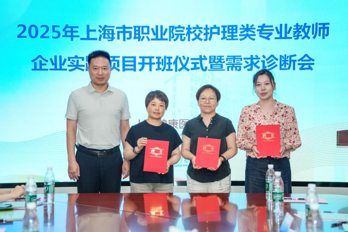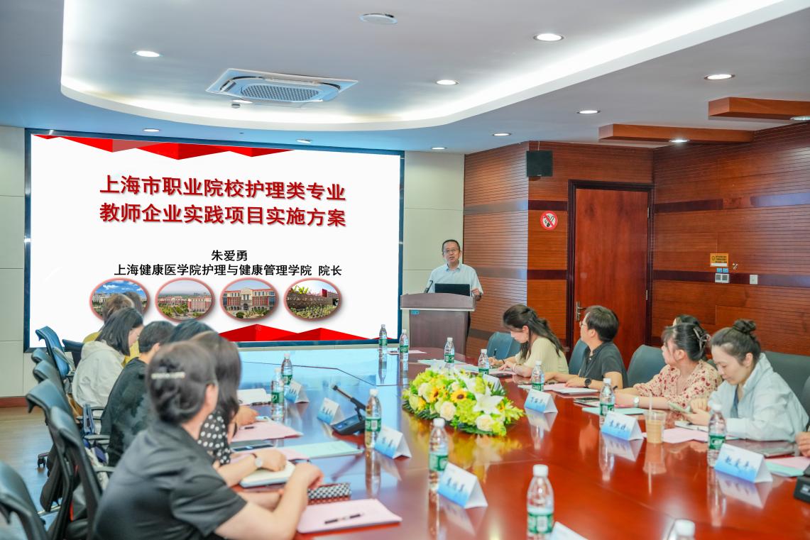 2025年7月1日,2025年上海市职业院校护理类专业教师企业实践项目开班仪式暨需求诊断会在伟德bv国际体育官方网站隆重举行,上海健康医公司党委副书记、副董事长唐红梅、上海市教委人事处处长于希嘉、上海市教师教育公司职教国培项目负责人朱园飞,以及上海交通大学医公司附属仁济医院、上海市浦东新区东明路街道世博家园养老院、上海大华福利院等基地领导、导师代表与来自全市11所职业院校的20名骨干教师齐聚一堂,共同见证项目启动。本次开班仪式由伟德bv国际体育官方网站经理朱爱勇主持。