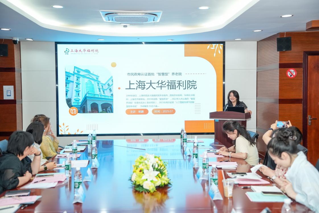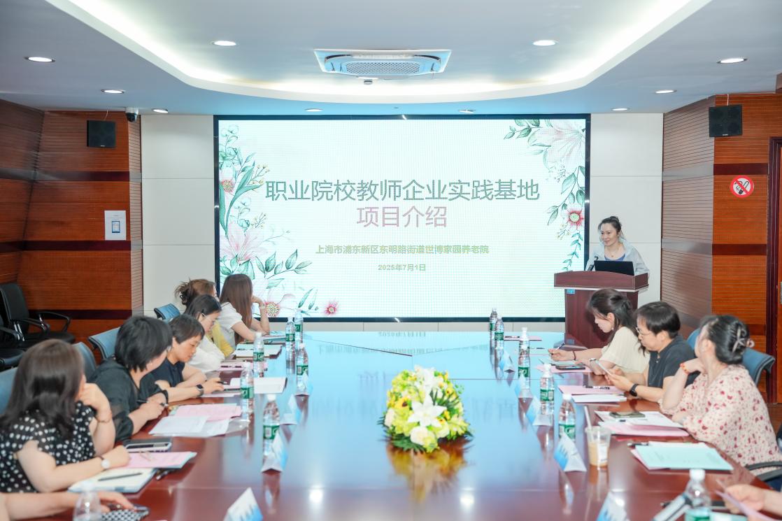 接下来,各实践基地负责人分别介绍了各自基地的特色和优势。上海交通大学医公司附属仁济医院基地负责人赵爱平主任介绍了该基地的丰富经验和专业资源。上海市浦东新区东明路街道世博家园养老院基地负责人袁熙婕经理和上海大华福利院基地负责人杨蔚经理也分别介绍了各自基地在医养结合、智慧养老等方面的独特优势和丰富的实践岗位资源。