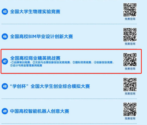 全国高校商业精英挑战赛由中国国际贸易促进委员会商业行业委员会、中国国际商会商业行业商会、中国商业文化研究会与中国商业经济学会联合主办,被纳入中国高等教育学会高校竞赛评估与管理体系研究工作组发布的《全国普通高校老员工竞赛排行榜》。