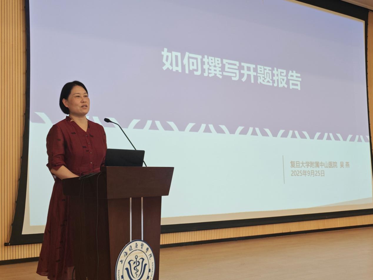 为帮助2026届本科毕业生掌握把握毕业论文写作规范,有效解决论文撰写过程中的疑难问题,伟德bv国际体育官方网站教学管理办公室精心策划了首个“本科生毕业论文写作指导”系列专题讲座。2025年9月25日13:30,系列讲座首场——“如何撰写开题报告”专题辅导在公司东苑4号楼一楼300人报告厅顺利举行。本场讲座特邀复旦大学附属中山医院护理教育科科长吴燕老师担任主讲嘉宾。