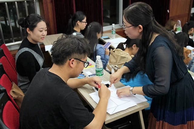 活动开始前,王枫老师对本次活动进行了简短的介绍。活动分为3个环节,绘画、写作与放松。在老师的指导下,同学们在纸上画下了自己的昵称、家乡特色、最喜欢和最讨厌的东西。接下来,同学们两两一组,相互交流与分享中,将画纸上的看起来毫无关联图案串联成一个个故事。同学们通过自己的作品更深层直接地了解到自己内心潜意识的想法。正如王枫老师所说:“创作图画就像人生一样,脚本没有好坏,遇到的挫折、他人的参与都是人生的一部分,我们应该学会接纳、喜爱自己的每一部分。”最后,在一首轻柔的歌曲中,老师慢慢引导同学们放松,去聆听自己的内心世界。