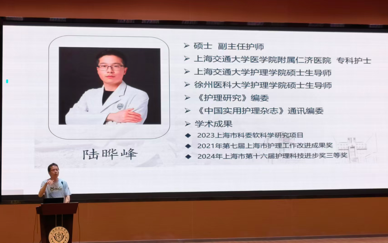 本次讲座特邀上海交通大学医公司附属仁济医院副主任护师、专科护士陆晔峰担任主讲。陆老师兼任多所高校硕士生导师及核心护理期刊编委,兼具临床实践与学术研究经验,为在场师生提供了专业而实用的指导。