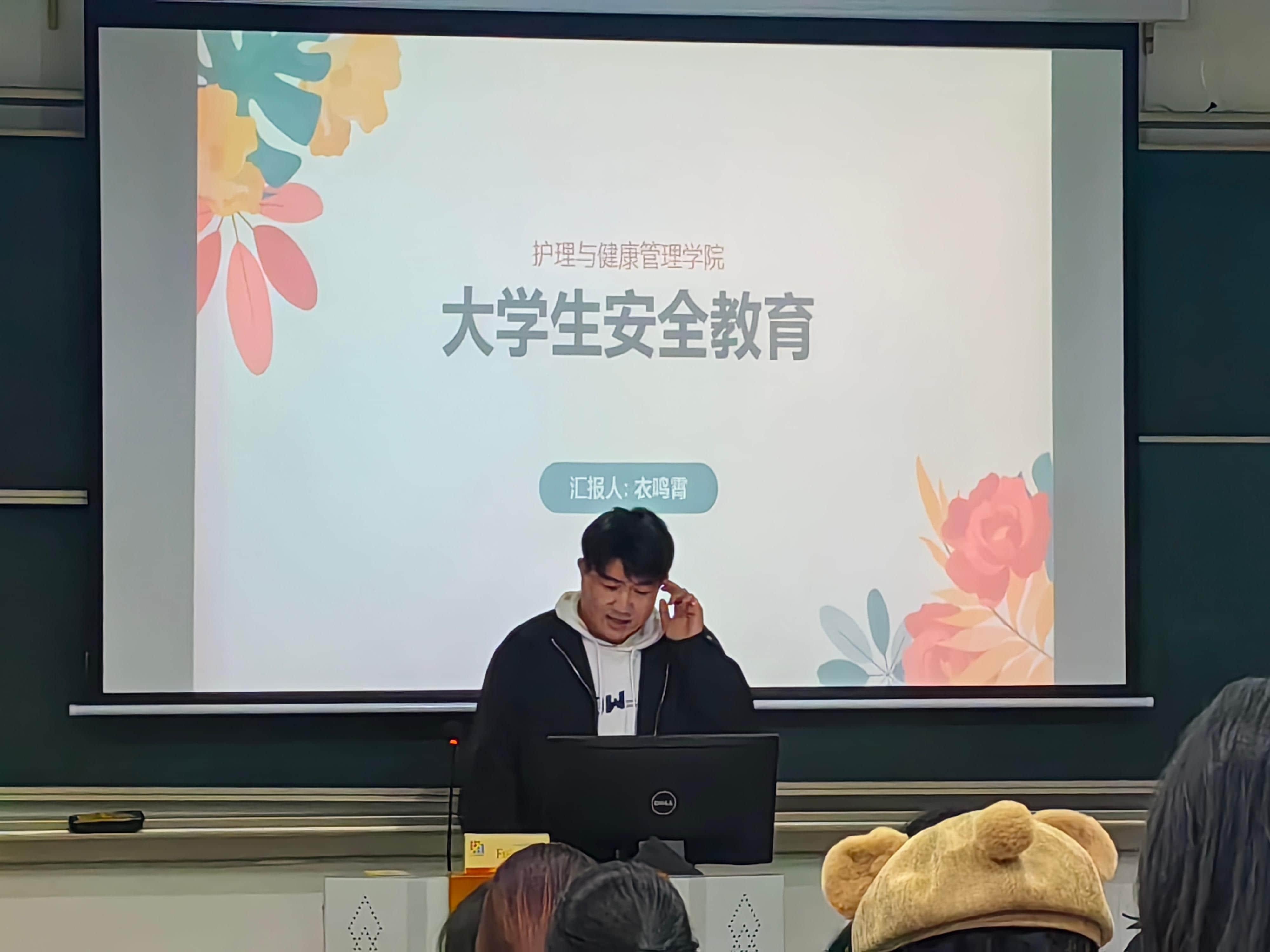 宣讲过程中,孟子翔同学从“安全意识培养”入手,指出安全不仅是个人生命财产的保护屏障,更是校园和谐稳定的重要基石。结合校园踩踏、实验室事故、网络诈骗等典型案例,强调安全意识应贯穿于日常生活的每一个环节,尤其是在网络安全、消防安全与交通安全等领域,必须时刻保持警惕,做到防微杜渐。