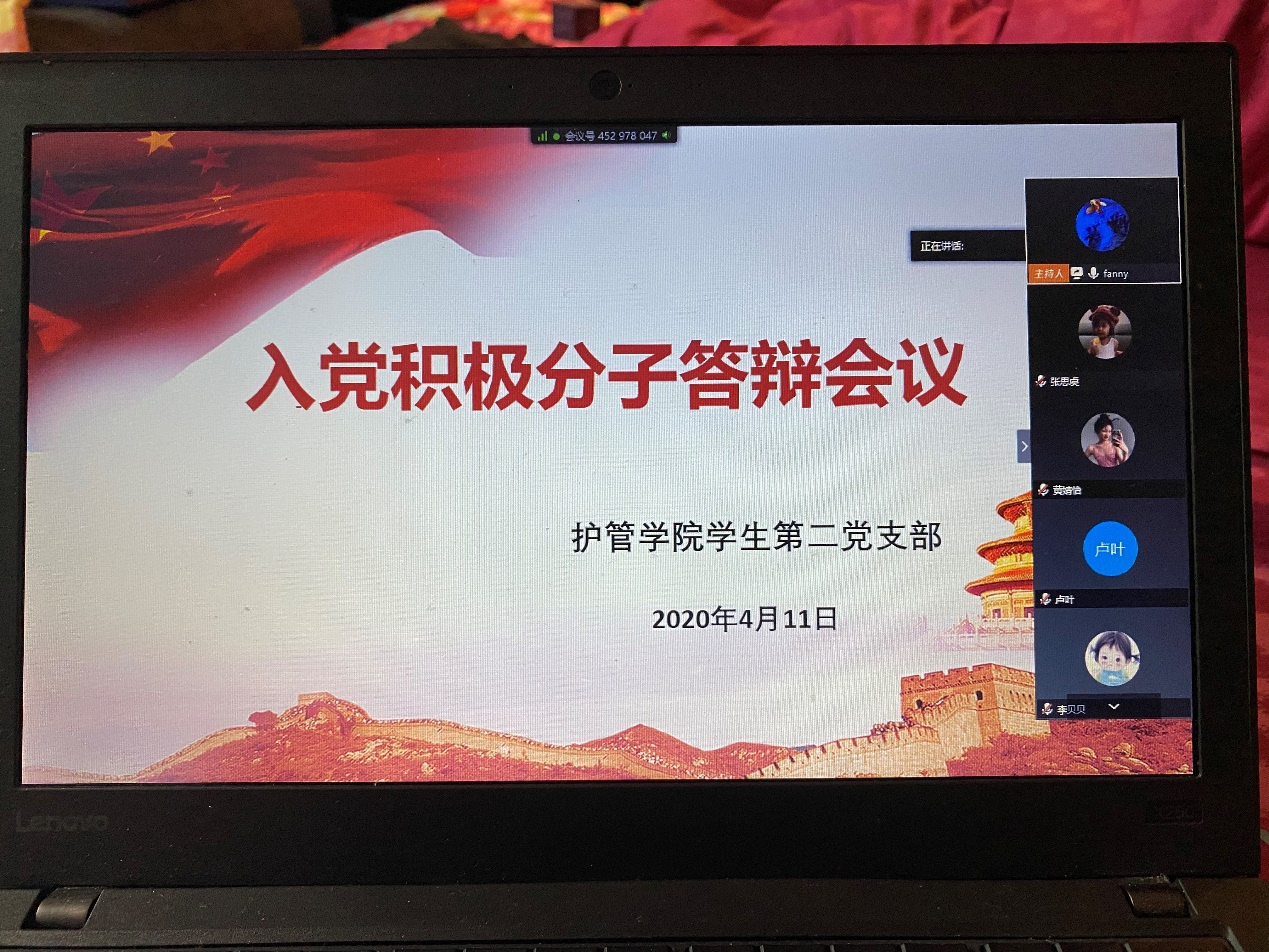 本次答辩会分为自我陈述和评委提问两个环节。21名积极分子按照答辩顺序通过PPT分别从思想、学习、工作、入党动机和个人优缺点等方面进行了3分钟的自我陈述。有同学提到自己对党的认识来源于身边优秀的党员;有同学表达了自己加入党组织的强烈愿望;也有同学分享了自己学习与工作感受;有同学介绍了自己参与抗“疫”的志愿者经历。评委们在认真聆听了每一位积极分子的汇报之后,从党的理论知识储备,政治思想觉悟等方面对选手进行了提问,积极分子们都运用自己在党课和日常生活中所学习的知识,表达了自己颇有深度的见解,多角度地回答了党员们的提问。通过老师们的提问和指正,入党积极分子们对自身的缺点和不足有了更深入的理解,使得积极分子们更加坚定信念,不忘初心,积极地向党组织靠拢。