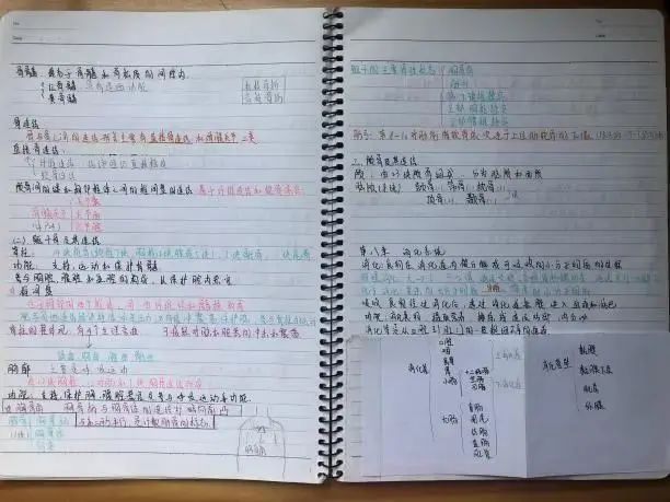 护启航来点评: 夏婕同学的笔记简洁明了,布局上也颇有讲究,有不少留白,便于课下复习时进行重点圈注和详解。书写也十分的端正,在色彩上,主要采用三色笔做笔记,把重点、难点一一标清,无论是视觉感官还是学习效果,都给人丰富充实之感。