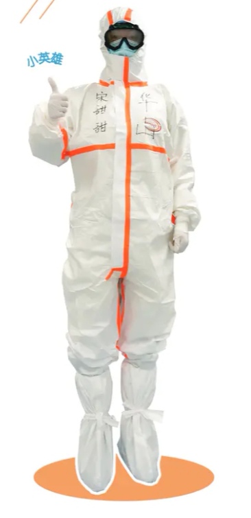 穿上防护服,我们就是武装到牙齿的“白衣战士”,每一次认真细致的检查,都是为了进入病房能更坚定地与病毒战斗、悉心守护患者。每天进舱前,我都再三回想自己穿防护装备的每一个步骤:隔离衣系带是否扎牢、N95 佩戴是否紧密、护目镜位置是否合适、内层手套和鞋套是否戴好、防护服胶条粘贴是否严密等细节。接着再有专职感控老师全方位把关检查,全部完成后在防护服外层写上我的姓名和有特色的文案。这样做一方面是为了给自己上班鼓劲加油,另一方面是为了增强患者战胜疾病的信心!在这种从头到脚重重防护之下,我感觉自己处在一个密闭的环境中,胸闷气促是最直观的感受,护目镜起雾气是常态。这带来的不仅是行动上的不便,更是心理上的压力,一些常规的护理操作难度比平时大大增加。我记忆最深刻的就是第一次给一位阿婆打针抽血。那是我进病房的第一个小夜班,接班做好病区内患者的生活护理之后,防护服里面的我早已经是汗流浃背,浑身湿透,N95 口罩压得脸颊火辣辣的疼,护目镜片上的雾气也凝聚成了小水滴不住地淌下来。接到医嘱,我就端着治疗盘走进病房,必要的核对和简短交流之后,我就开始了操作。隔着护目镜和防护面屏,戴着双层手套,我屏气凝神,仔细寻找着血管的穿刺点。握拳、消毒、穿刺,结果竟然失败了!正当我心里想着该怎么向阿婆解释的时候,她伸出另外一只手说:“莫慌,莫慌,再厥一针。”(武汉方言:不要慌张,再打针)这是多么可爱的患者,面对疫情和病痛,心中装的是对医务人员的感谢,而此时我的心中满满的感动!